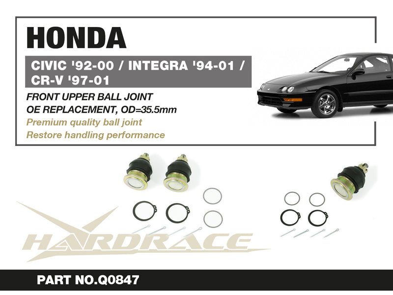 Hardrace Honda Civic 92-00/Cr-V 97-01/Honda Accord 98-12/ - Odyssey JDM 03-13/Prelude 97-01/ - Acura Integra 94-01/Cl 01-03/Tl 96-14/Tsx 03-14 - Front Upper Ball Joint 35.5Mm - OE Replacement - 2Pcs/Set