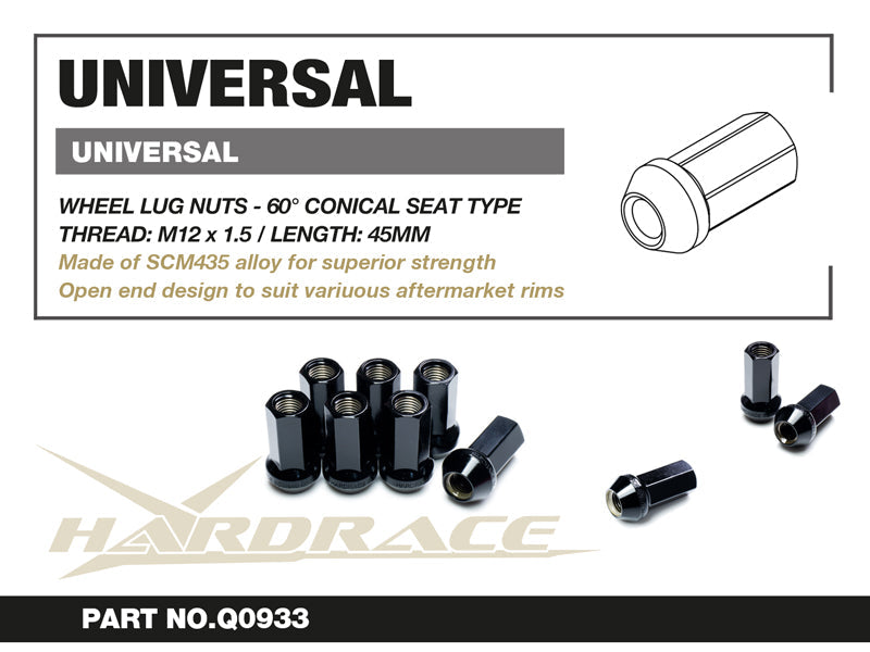 Hardrace Wheel Lug Nuts - M12 X 1.5 Length: 45mm Open-End Type 60° Conical Seat 20Pcs/Set